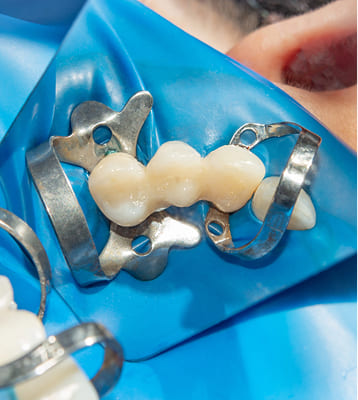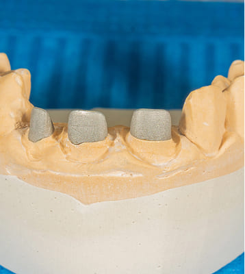 • Puente base de zirconio con carga de cerámica (implanto soportada) 3p